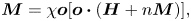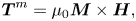$\boldsymbol{B} = \mu _0 (\boldsymbol{H} + n \boldsymbol{M})$ is the magnetic flux density. An alternate expression is based on the Gilbert model,