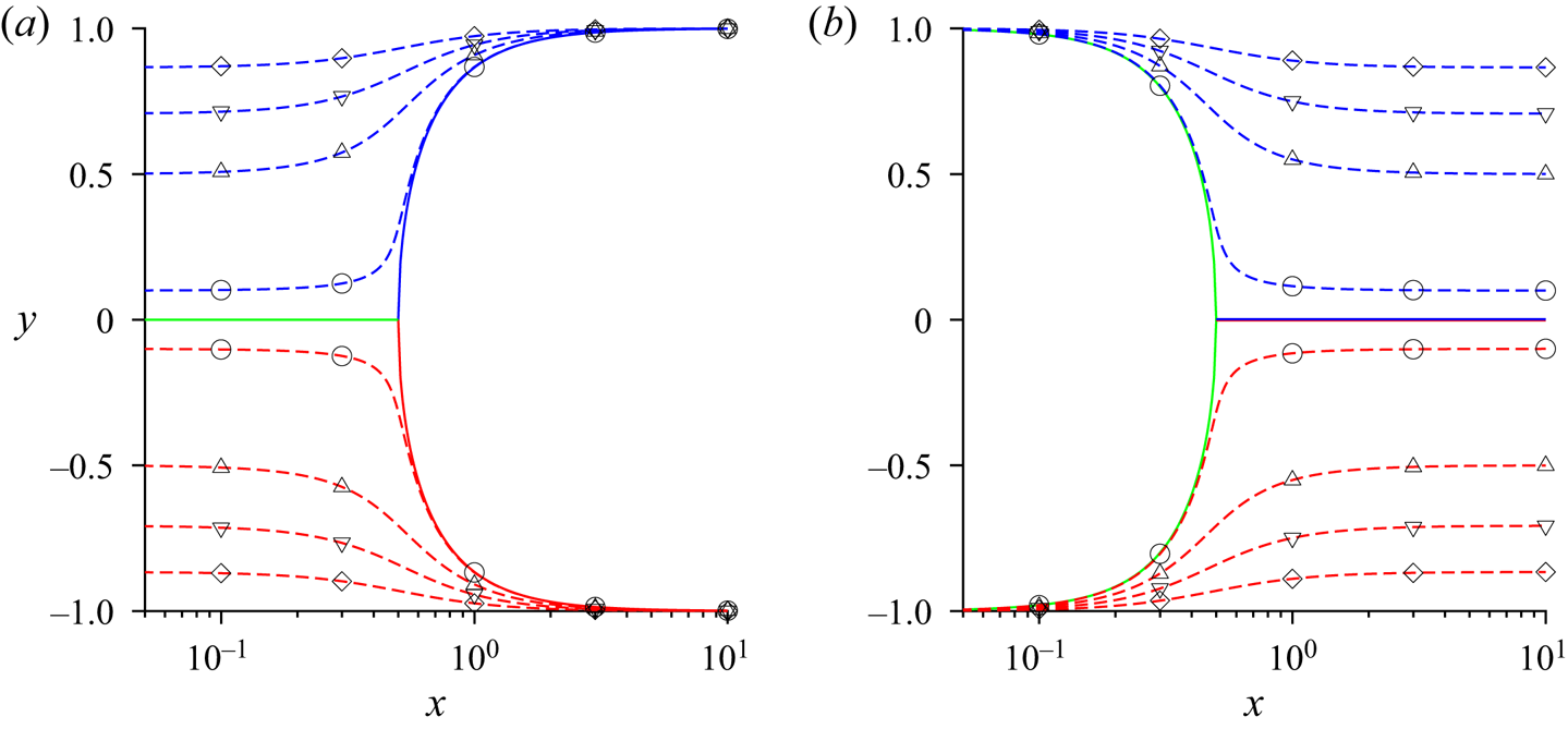 The diffusion tensor depends on the magnetic moment of the particles, and not the magnetic field, because it is caused by the interaction force between the particles, as noted in Sherman et al. (Reference Sherman, Becnel and Wereley2015) and Klingenberg, Ulicny & Golden (Reference Klingenberg, Ulicny and Golden2007). This effect is anisotropic, and it operates only in the direction of the particle moment. Importantly, the effect of interactions dampens fluctuations in the direction of the magnetic moment since the diffusivity is positive, and it has no effect in the direction perpendicular to the particle magnetic moment.