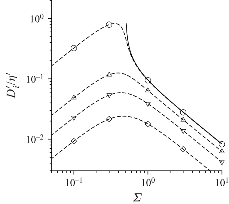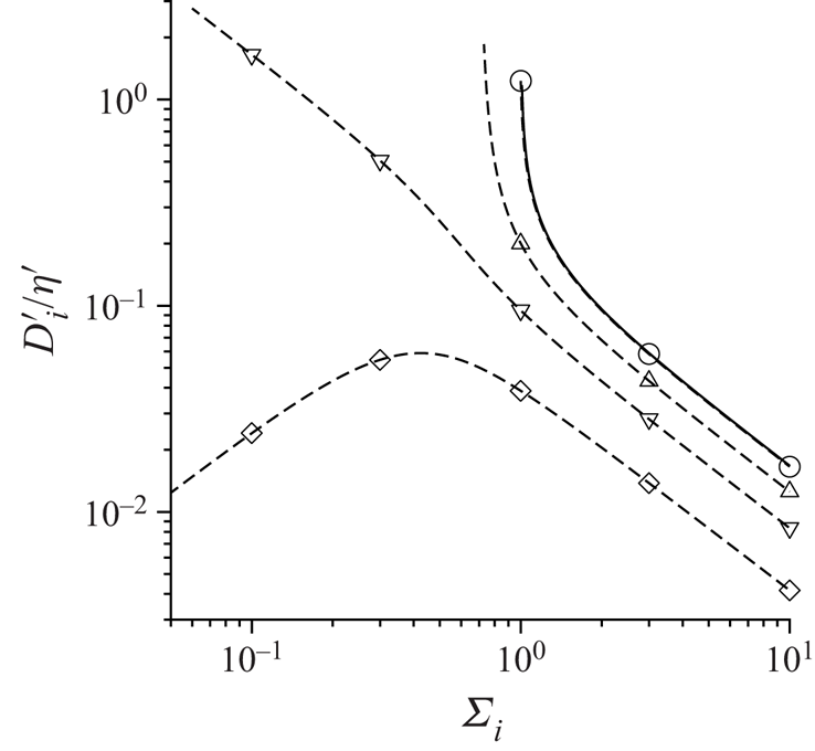 $\varSigma _i \gg 1$, and it decreases proportional to