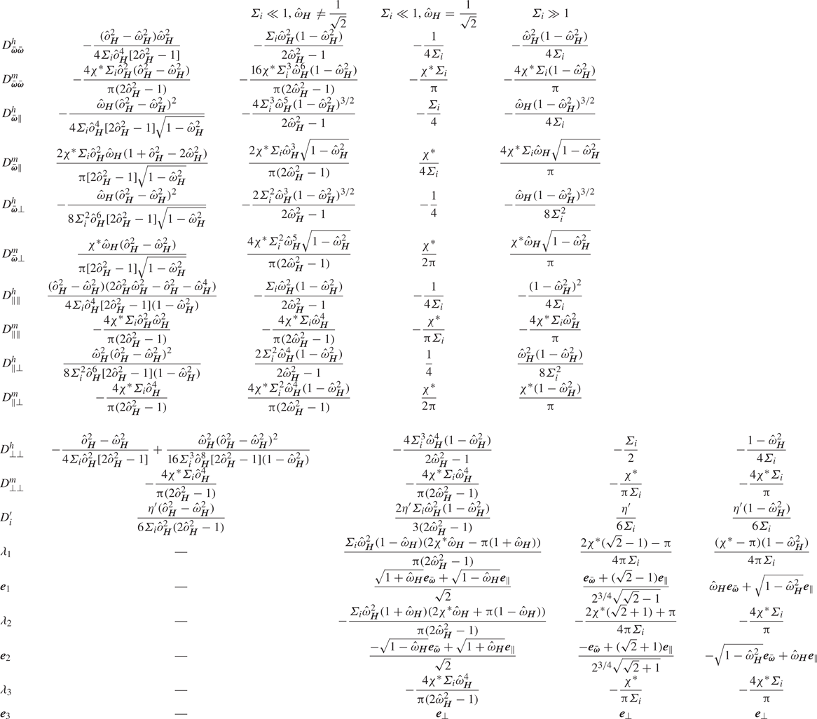 $\hat {\omega }_{\boldsymbol{H}} \neq 0$). The elements of the diffusion tensor, and their asymptotic behaviour for