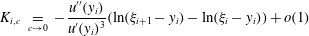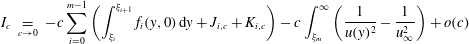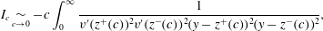 $$\begin{eqnarray}\displaystyle I_{c}\underset{c\rightarrow 0}{{\sim}}-c\int _{0}^{\infty }\frac{1}{v^{\prime }(z^{+}(c))^{2}v^{\prime }(z^{-}(c))^{2}(y-z^{+}(c))^{2}(y-z^{-}(c))^{2}}, & & \displaystyle\end{eqnarray}$$