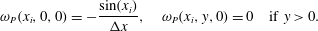 $$\begin{eqnarray}\displaystyle \unicode[STIX]{x1D714}_{P}(x_{i},0,0)=-\frac{\sin (x_{i})}{\unicode[STIX]{x0394}x},\quad \unicode[STIX]{x1D714}_{P}(x_{i},y,0)=0\quad \text{if }y>0. & & \displaystyle\end{eqnarray}$$