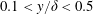 $0.1<y/\unicode[STIX]{x1D6FF}<0.5$