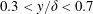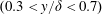 $0.3<y/\unicode[STIX]{x1D6FF}<0.7$
