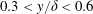 $0.3<y/\unicode[STIX]{x1D6FF}<0.6$