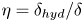 $\eta$ is a quantity obtained a posteriori that compares the effective hydraulic channel height under turbulent flow conditions to its laminar counterpart, which is exactly the equivalent channel height
