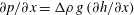 $\unicode[STIX]{x2202}p/\unicode[STIX]{x2202}x=\unicode[STIX]{x0394}\unicode[STIX]{x1D70C}\,g\,(\unicode[STIX]{x2202}h/\unicode[STIX]{x2202}x)$