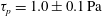 $\unicode[STIX]{x1D70F}_{p}=1.0\pm 0.1\,\text{Pa}$