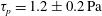 $\unicode[STIX]{x1D70F}_{p}=1.2\pm 0.2\,\text{Pa}$