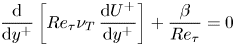 with a scaled eddy viscosity ${Re}_{\tau } \nu _T$. Integrating (C1) once, and switching to the outer coordinate