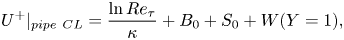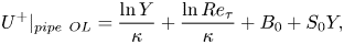 $\kappa ^{-1} [\ln Y + \ln {Re}_{\tau }]$ plus an