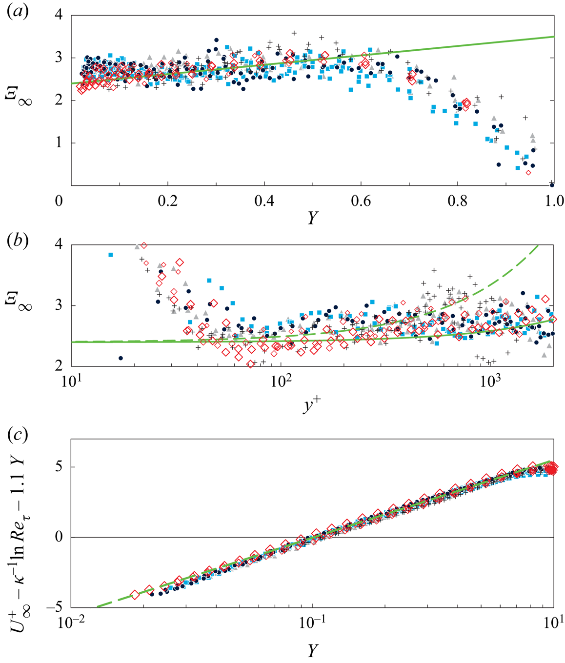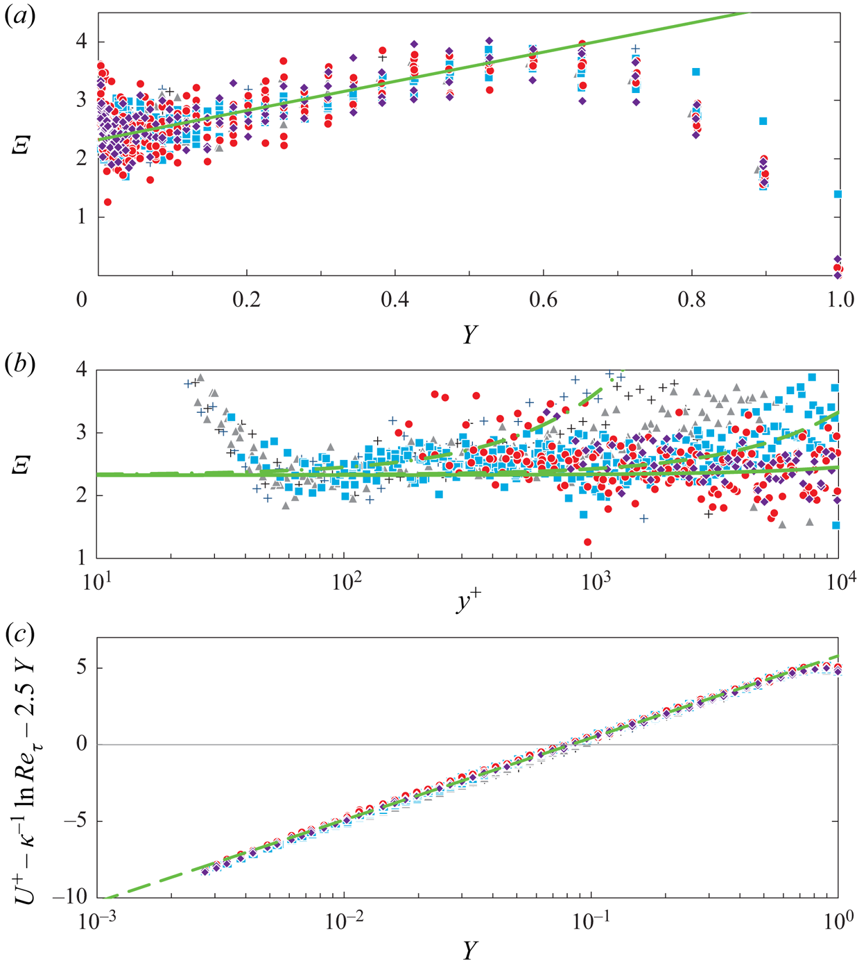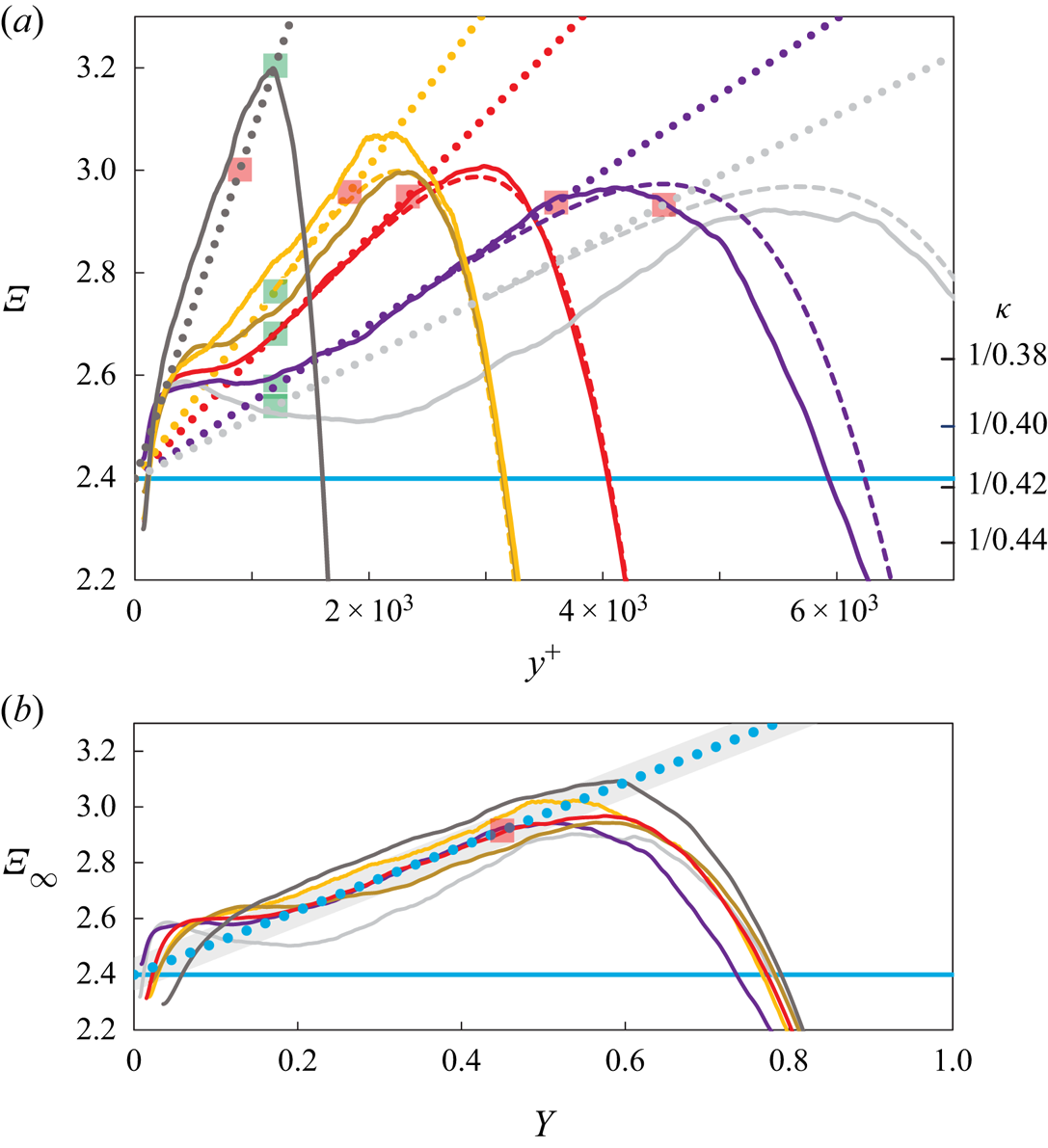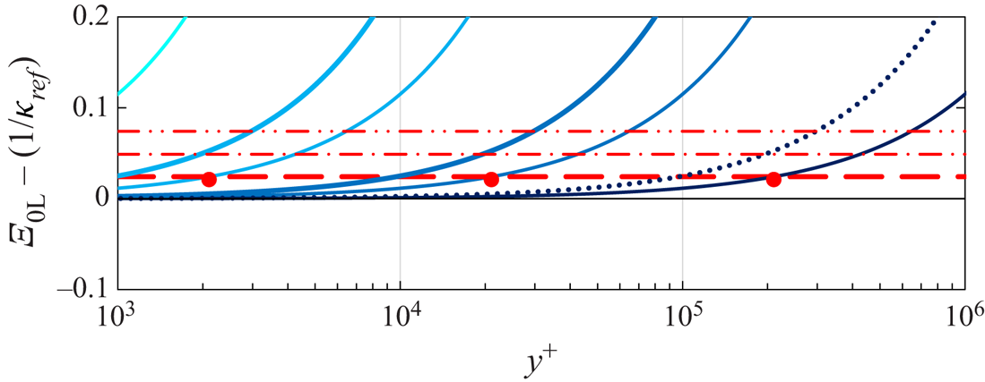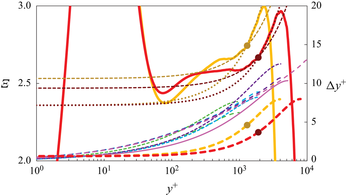 $\varXi (y^+)$, as discussed for instance by Jiménez & Moser (Reference Jiménez and Moser2007), Lee & Moser (Reference Lee and Moser2015, § 3.1) and Luchini (Reference Luchini2017), who has argued that the coefficient