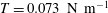 $T=0.073~\text{N}~\text{m}^{-1}$