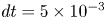 $dt=5\times 10^{-3}$. Each simulation is started from an