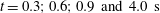 $t=0.3;0.6;0.9\text{ and }4.0~\text{s}$