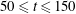 $50\leqslant t\leqslant 150$