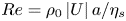 $Re$ is the Reynolds number, given by  $Re = \rho _0\,|U|\,a / \eta _s$. To keep the computations tractable at non-zero Reynolds numbers, we consider only the simplest possible three-dimensional odd viscosity