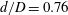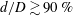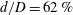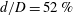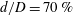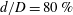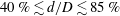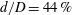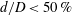 $44\,\%\lesssim d/D\lesssim 80\,\%$