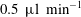 $0.5~\unicode[STIX]{x03BC}\text{l}~\text{min}^{-1}$