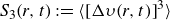 $S_{3}(r,t):=\langle {{ [ \Delta \upsilon (r,t) ]}^{3}} \rangle$