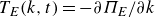 $T_{E}(k,t)=-{\partial \Pi _{E}}/{\partial }{k}$