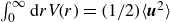 $ \int _{0}^{\infty }{\textrm d}rV\!(r) = ({1}/{2})\langle {\boldsymbol{u}^{2}}\rangle$