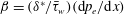$$\begin{eqnarray}\unicode[STIX]{x1D6FD}=\frac{\unicode[STIX]{x1D6FF}^{\ast }}{\bar{\unicode[STIX]{x1D70F}}_{w}}\frac{\text{d}p_{e}}{\text{d}x}=\frac{\unicode[STIX]{x1D6FF}^{\ast }}{\unicode[STIX]{x1D70C}u_{\unicode[STIX]{x1D70F}}^{2}}\frac{\text{d}p_{e}}{\text{d}x},\end{eqnarray}$$