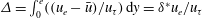 $\unicode[STIX]{x1D6E5}=\int _{0}^{e}((u_{e}-\bar{u})/u_{\unicode[STIX]{x1D70F}})\,\text{d}y=\unicode[STIX]{x1D6FF}^{\ast }u_{e}/u_{\unicode[STIX]{x1D70F}}$