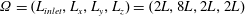 $\unicode[STIX]{x1D6FA}=(L_{inlet},L_{x},L_{y},L_{z})=(2L,8L,2L,2L)$