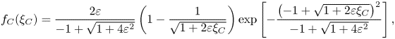 \begin{equation} f_C(\xi_{C}) = \frac{2 \varepsilon}{-1 + \sqrt{1 + 4 \varepsilon^{2}}} \left(1 - \frac{1}{\sqrt{1+ 2 \varepsilon \xi_{C}}} \right)\exp \left[- \frac{\left({-}1+\sqrt{1+2 \varepsilon \xi_{C}} \right)^{2}}{-1+\sqrt{1+4 \varepsilon^{2}}} \right], \end{equation}