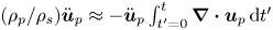 $({\rho _p}/{\rho _s)}\ddot {\boldsymbol {u}}_{p}\approx -\boldsymbol {u}_p\,\boldsymbol {\nabla }\boldsymbol {\cdot }\dot {\boldsymbol {u}}_{p}$ over long times, subject to our assumptions that