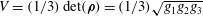 $V=(1/3)\sqrt{g_{1}g_{2}g_{3}}$