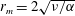 $r_{m}=2\sqrt{\unicode[STIX]{x1D708}/\unicode[STIX]{x1D6FC}}$