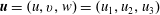 $\boldsymbol{u}=(u,v,w)=(u_{1},u_{2},u_{3})$