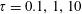 . The optical thickness varies by two orders of magnitude, being 0.1, 1 and 10. The size of the computational domain in the streamwise and spanwise directions is