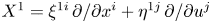 $X^1 =\xi ^{1i}\,\partial /\partial x^i + \eta ^{1j}\,\partial /\partial u^j$,