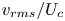 $u_{rms}/U_c$, from the same experiments and DNS.