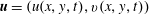 $\boldsymbol{u}=(u(x,y,t),v(x,y,t))$