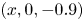 $(x,0,-0.9)$ (i.e. the farthest probes from the free surface).