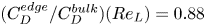 $({C_D^{{edge}}}/{C_D^{bulk}})(Re_L) = 0.88$ constant (based on the