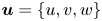 $\boldsymbol {u} = \{u,v,w\}$ is the velocity field,