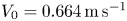 $V_0 = 0.664\, {\rm m}\,{\rm s}^{-1}$ (