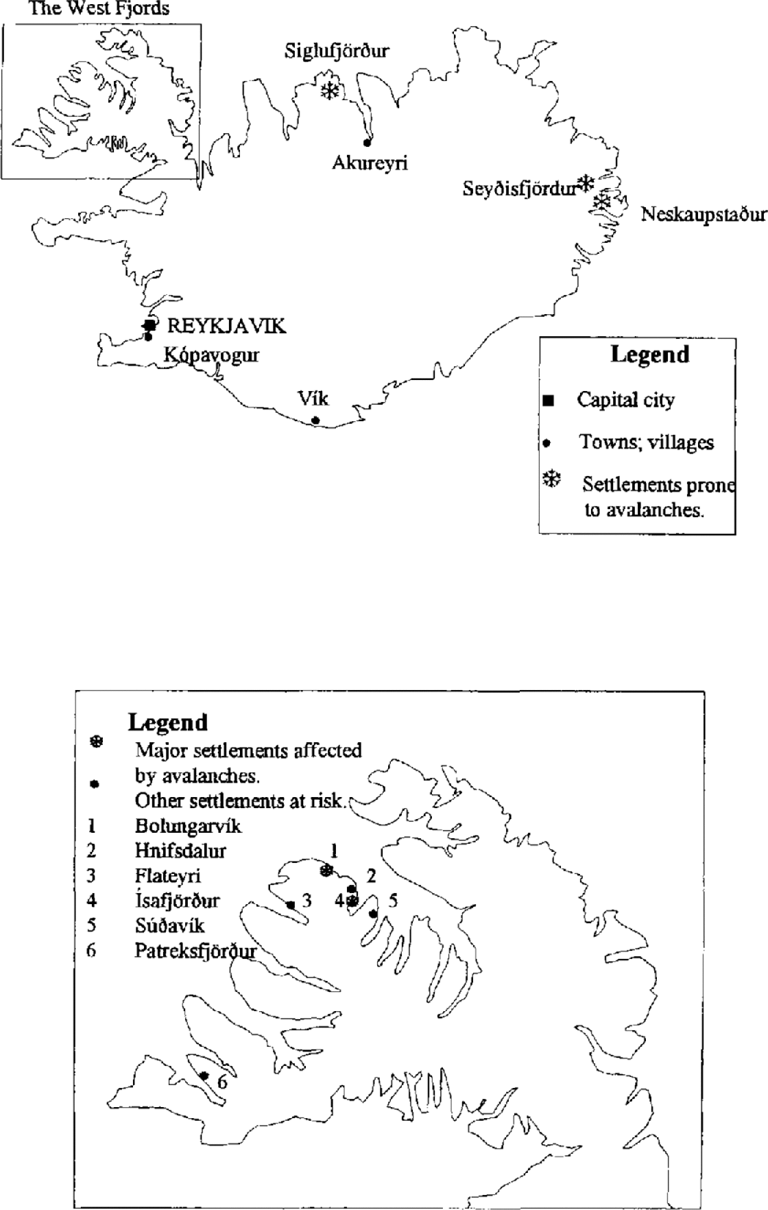 Iceland lies just south of the Arctic Circle in the North Atlantic Ocean and covers an area of roughly 103 000 km2, with a population of 260 000 (Fig. 1). The country is very mountainous and avalanche activity is common. The first recorded avalanche fatalities were in the year 1118 and since that time over 680 have occurred, a toll worse than that from any other type of land-based natural hazard in Iceland (Reference EgilssonEgilsson, 1997). During recent years it is the towns and villages in the northwest (the West Fjords) which have been most at risk from avalanching.