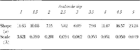 Table 6. Estimated shape and scale parameters for gamma distributions of avalanche width