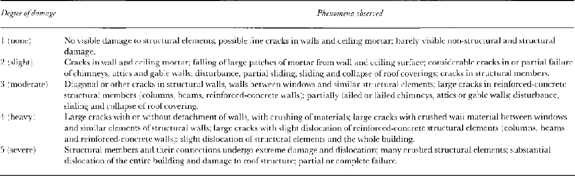 Table 8. Degree of damage to buildings from earthquakes in Montenegro, 1979. From Reference Fourner d’albe and KoridzeFourner d’Albe (1988)
