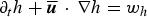 $\partial _t h + \overline {{\bi u}}\,\cdot \,{\bf \nabla} h = w_h$