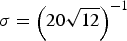 $\sigma = \left( {20\sqrt {12}} \right)^{ - 1} $