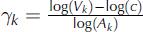 where c and γ are scaling parameters to be calibrated against a given set of (V, A) pairs, which can be done using different techniques, as described below.