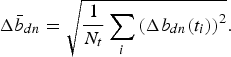 (13)$$ \Delta {\bar b}_{dn}=\sqrt{{\displaystyle{1} \over {N_t}}\sum_i\left(\Delta b_{dn}(t_i)\right)^2}. $$