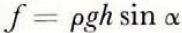Equating these two expressions for the outflow and remembering that f = ρgh sin α, we finally obtain